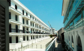 The Carriageway from Weld Quay end of the site with Rice Miller Residences to the left and Godown 1 to the right