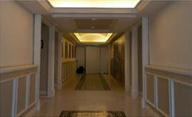 Level 2 corridor, showing tiled floor and panelled walls